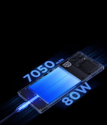 - 7,050mAhバッテリーと最大80W高速充電対応